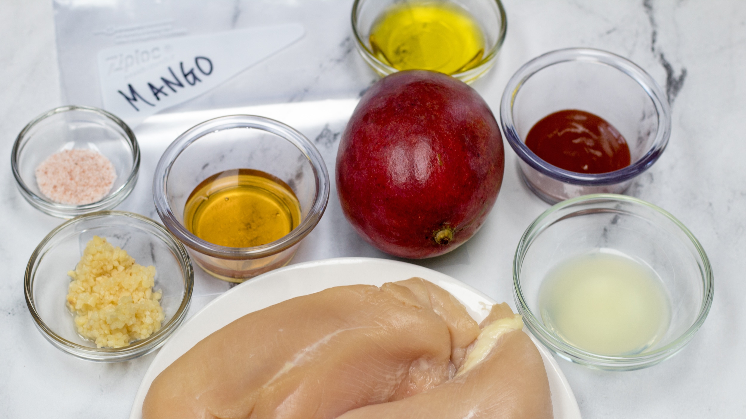 Remove chicken from marinade and discard marinade. This flavorful mango chicken marinade combines fresh mango, honey, lime, sriracha, and a touch of garlic for a wonderfully tasty baked or grilled chicken dinner! Seal bag (or cover bowl) and marinate in the fridge for 6 to 8 hours. Super healthy at less than 300 calories for a whole chicken breast. Stir in mango puree, lime juice, sugar, lime zest, salt, and pepper;
